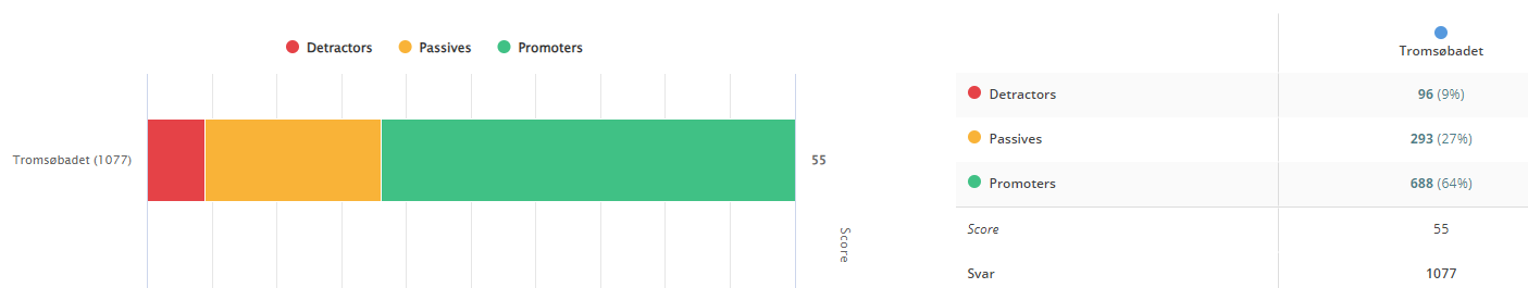 Ifølge Net promoter score (NPS) i undersøkelsen, som måler hvor sannsynlig det er at gjester vil anbefale badelandet videre, skårer Tromsøbadet 55. Til sammenligning skårte Tromsøbadet 49 i 2022.