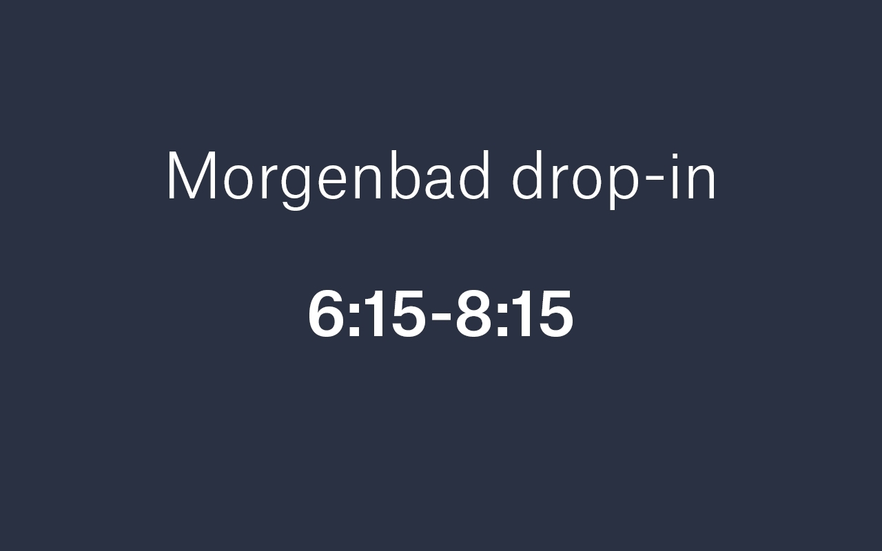 - Kom når du vil mellom 6:15 og 8:15. Alle morgenbadere må opp av vannet kl. 8:15.