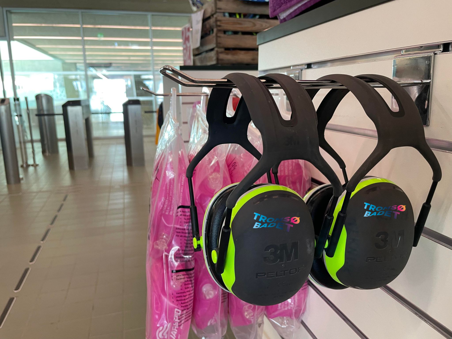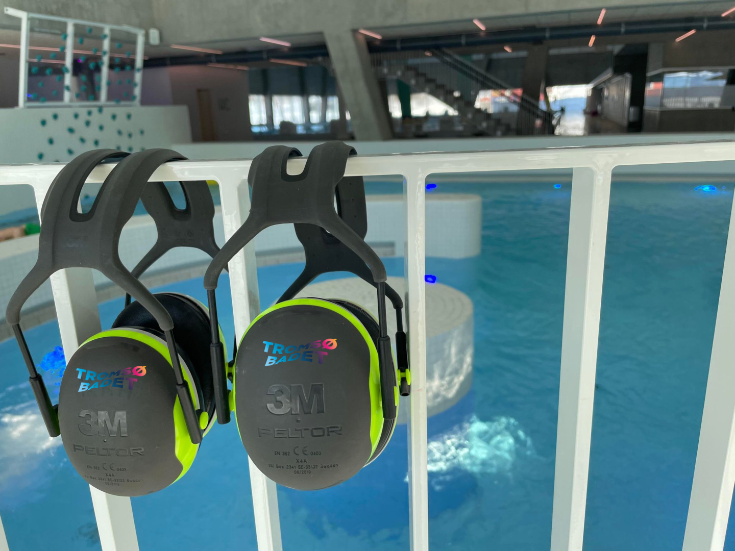 Tromsøbadets tekniske avdeling har derfor utviklet vanntette hørselvern som gjestene må bruke på Tromsøbadet mens byggingen pågår.