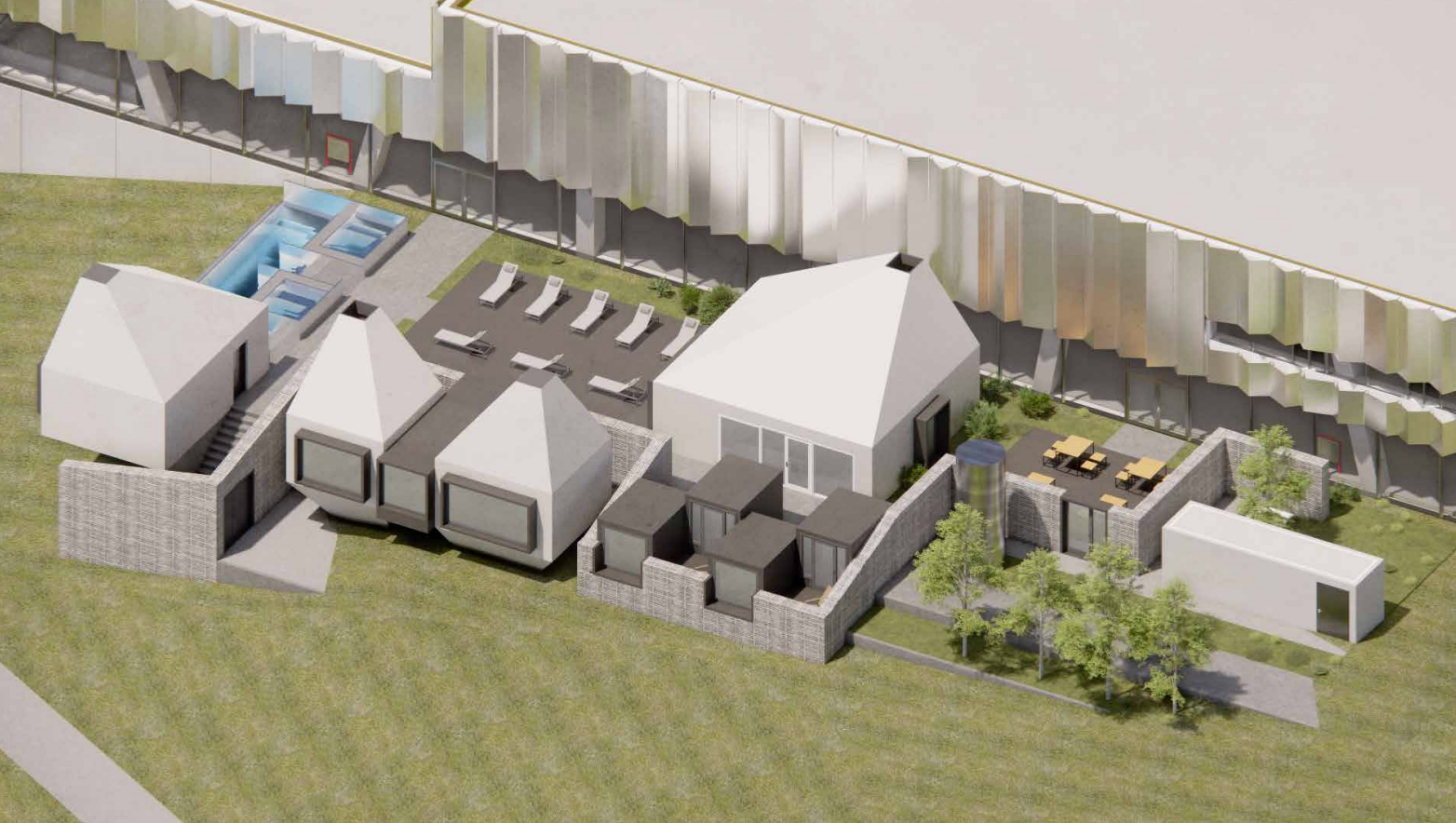 I det nåværende utkastet består fasilitetene blant annet av tre ulike badstuer, to varmekulper, ett varmebasseng, en større kuldekulp, fire mindre saunaer og ett loungebygg. Det er også lagt inn rikelig med plass for at gjestene kan oppholde seg utendørs både sommer og vintertid. Det er også mulighet for snøbading.