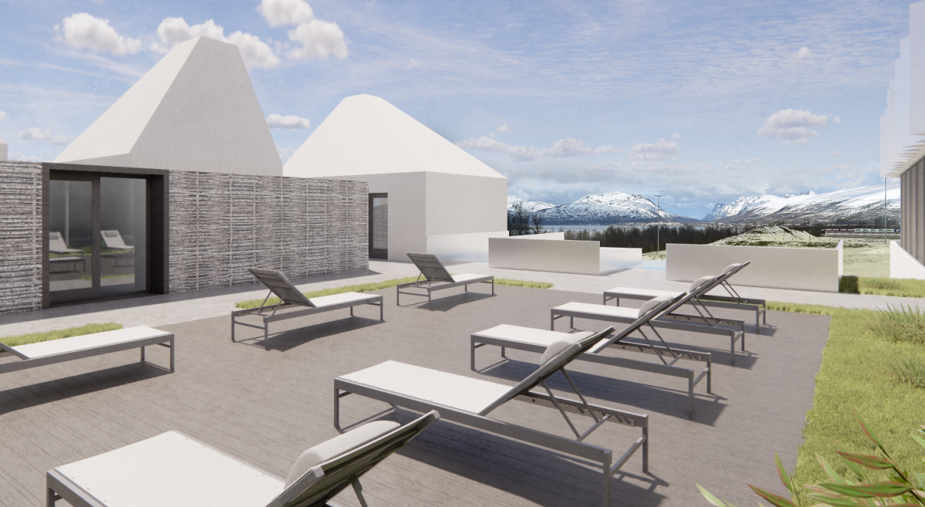 – Utkastet, som Asplan Viak har tegnet, er inspirert av den nordnorske naturen og kulturen, og den vil sikre trygge overganger mellom innendørs- og utendørsområdene, legger hun til.
