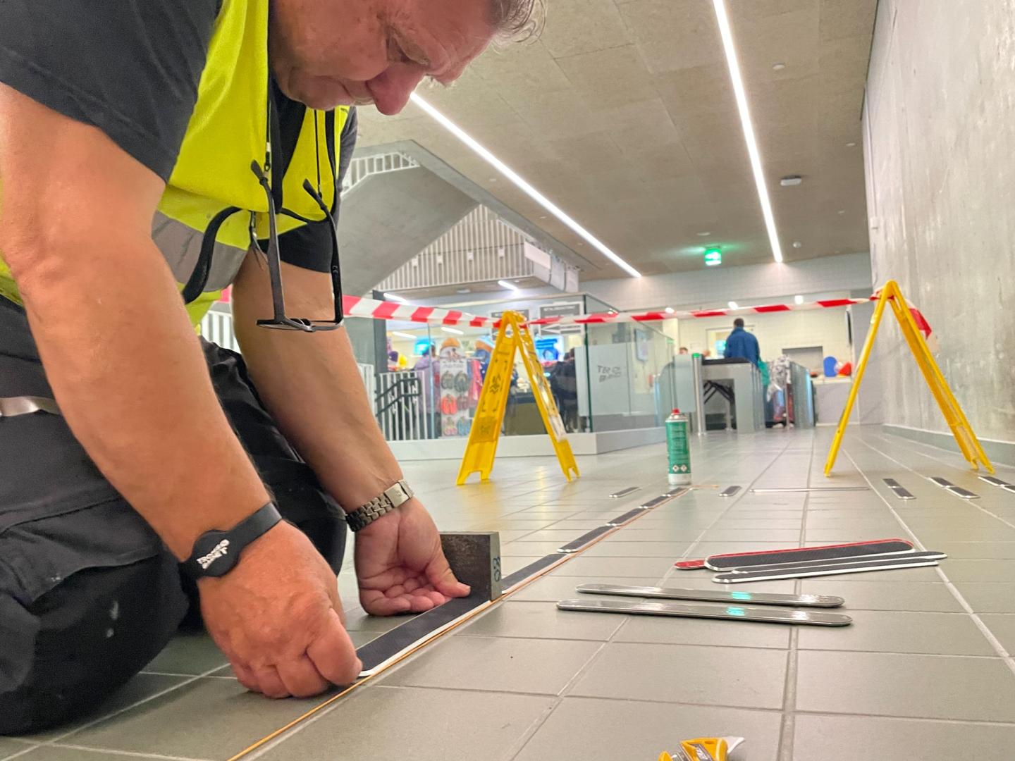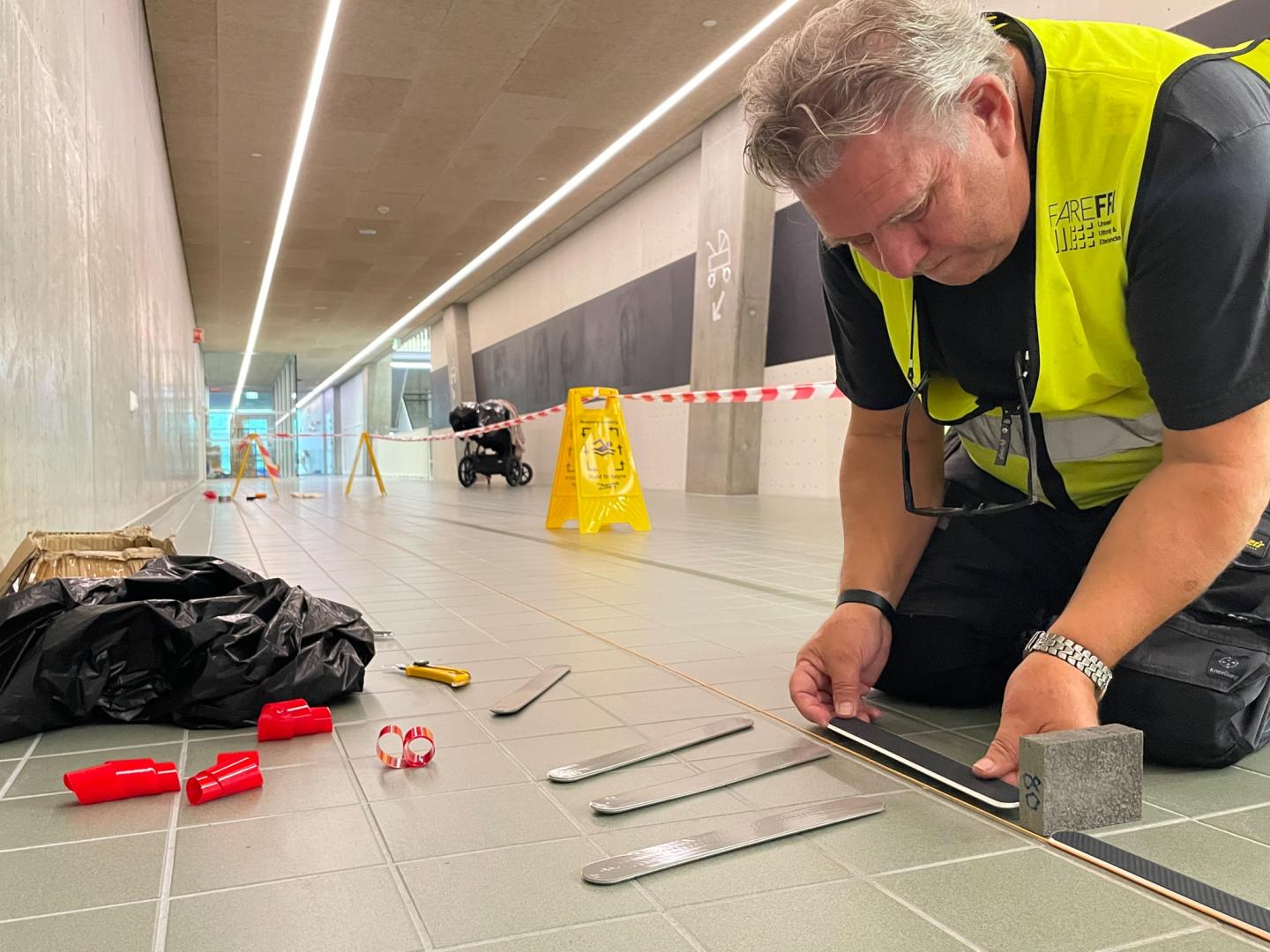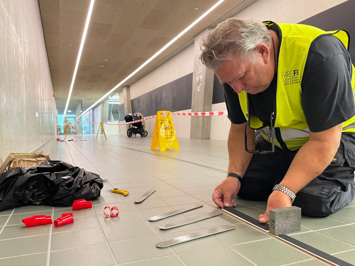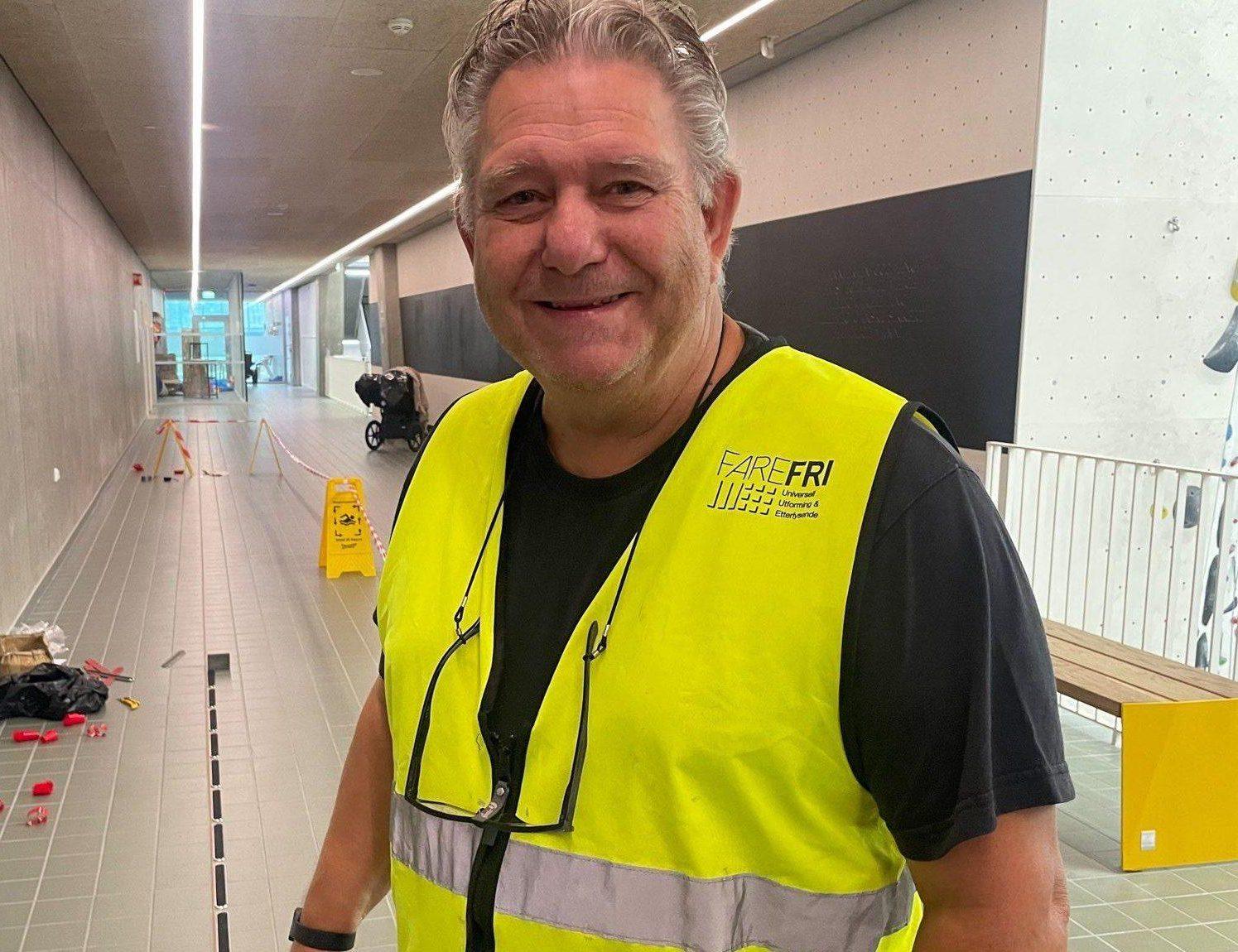 Det sier Willy Fjeld i Farefri AS, som denne uken jobber med å taktilmerke rundt 70 meter gulv på Tromsøbadet.