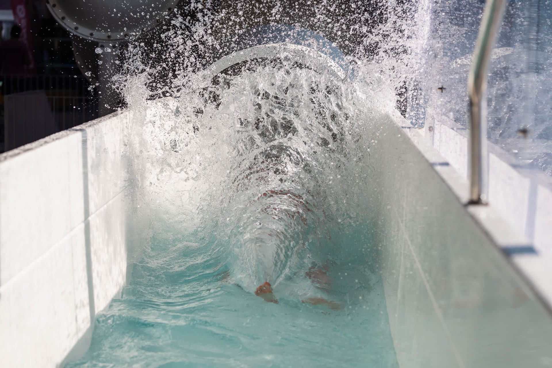 Sentralt i bølgebassenget finner du inngangen til malstrømmen. Her kan du la deg drifte med, eller svømme imot – morsom aktivitet for hele familien! Dybde: 1,1 meter.