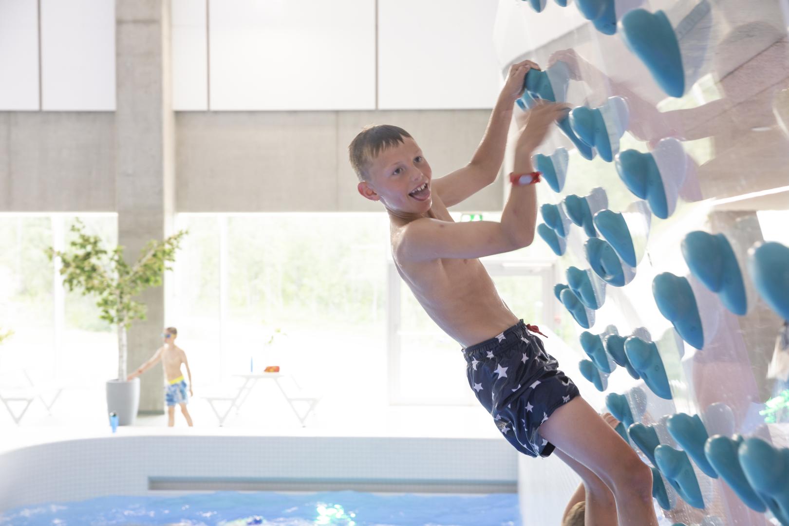 Helt i enden av bølgebassenget finner du en liten klatrevegg du kan boltre seg i. Liten utfordring for store og små! Merk at klatreveggen skal ikke brukes når bølgene er i gang.