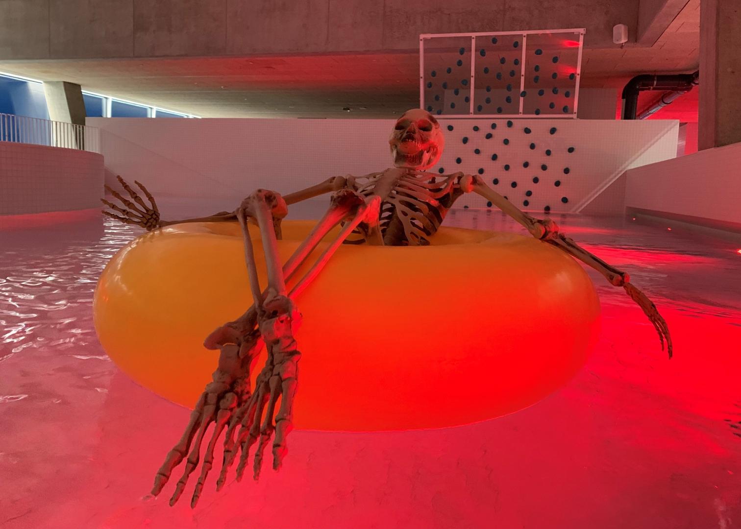 Vi demper belysning og det blir skrekkelig mye moro i bassengene når vi invitere til Halloween-bading!