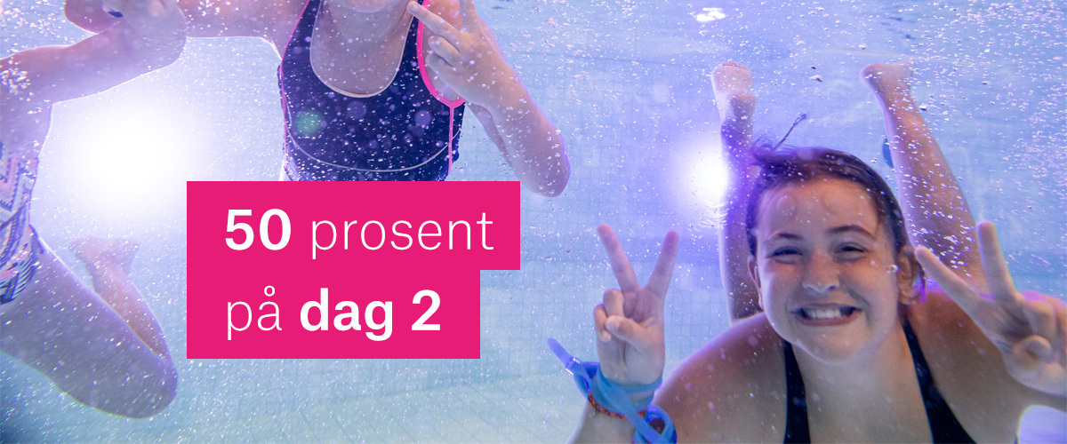 I sommer har vi Halv pris på dag 2 – du får 50 prosent rabatt på badedag 2 ved fremvisning av kvitteringen.